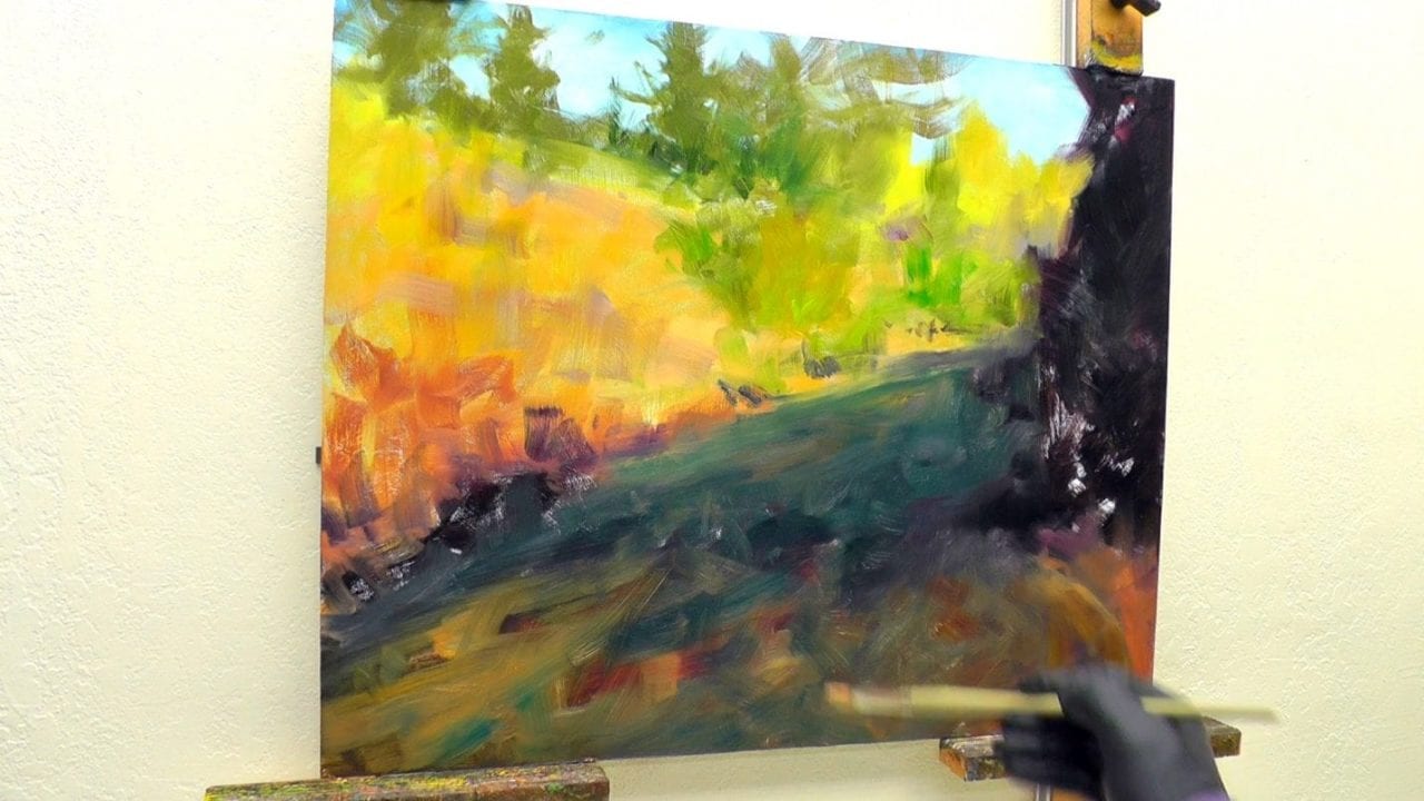 Alla Prima is how I prefer to paint rather than letting each layer dry before going on to the next. Working while the paint is still wet gives me a lot more opportunities to play with edges. (like when I’m adding small branches through thick layers of paint).
