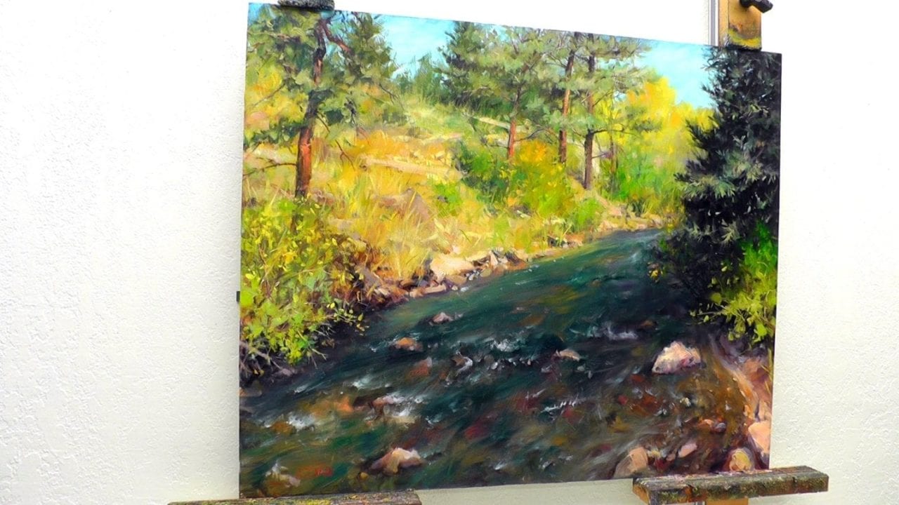 The painting Finding Gold in Estes Park was inspired by a day of hiking around with Kristie. We went early before the opening that night of an Oil Painters of America show I was in. There is so much to see in that beautiful Colorado town. We made sure we arrived with the early morning commuters.